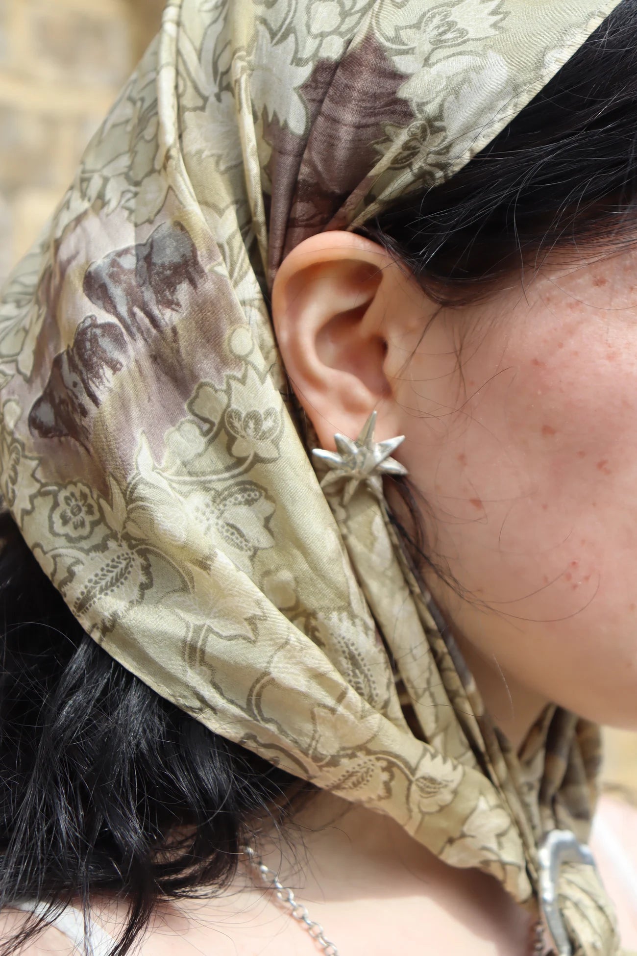 These sculptural studs draw inspiration from the organic forms found in the works of Kiki Smith. Each earring is individually hand-carved in wax and cast in recycled sterling silver using the traditional lost wax process.