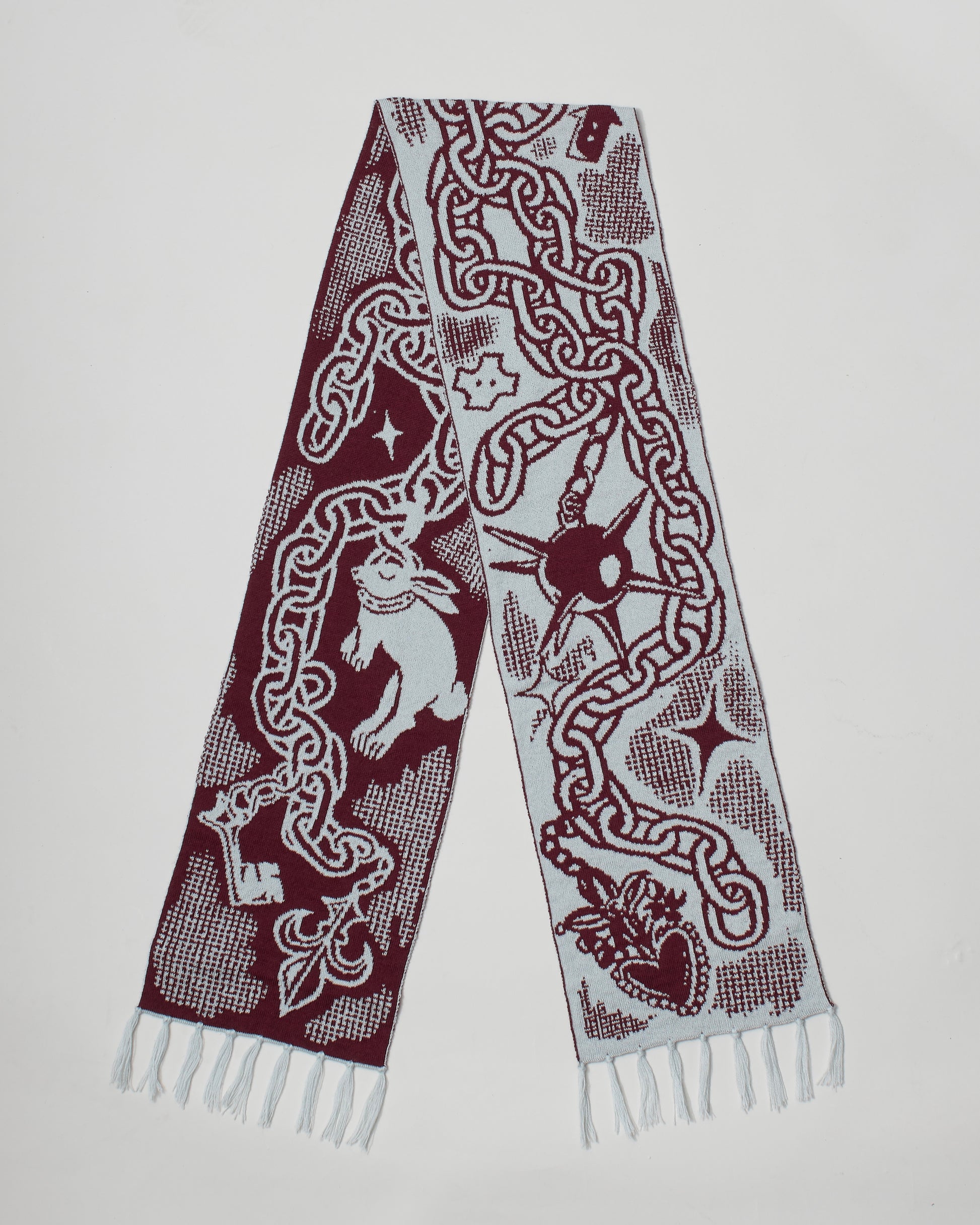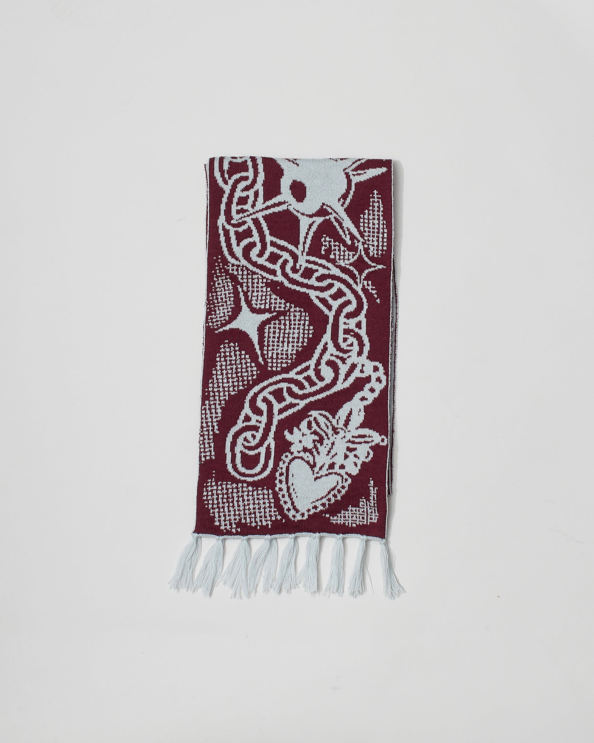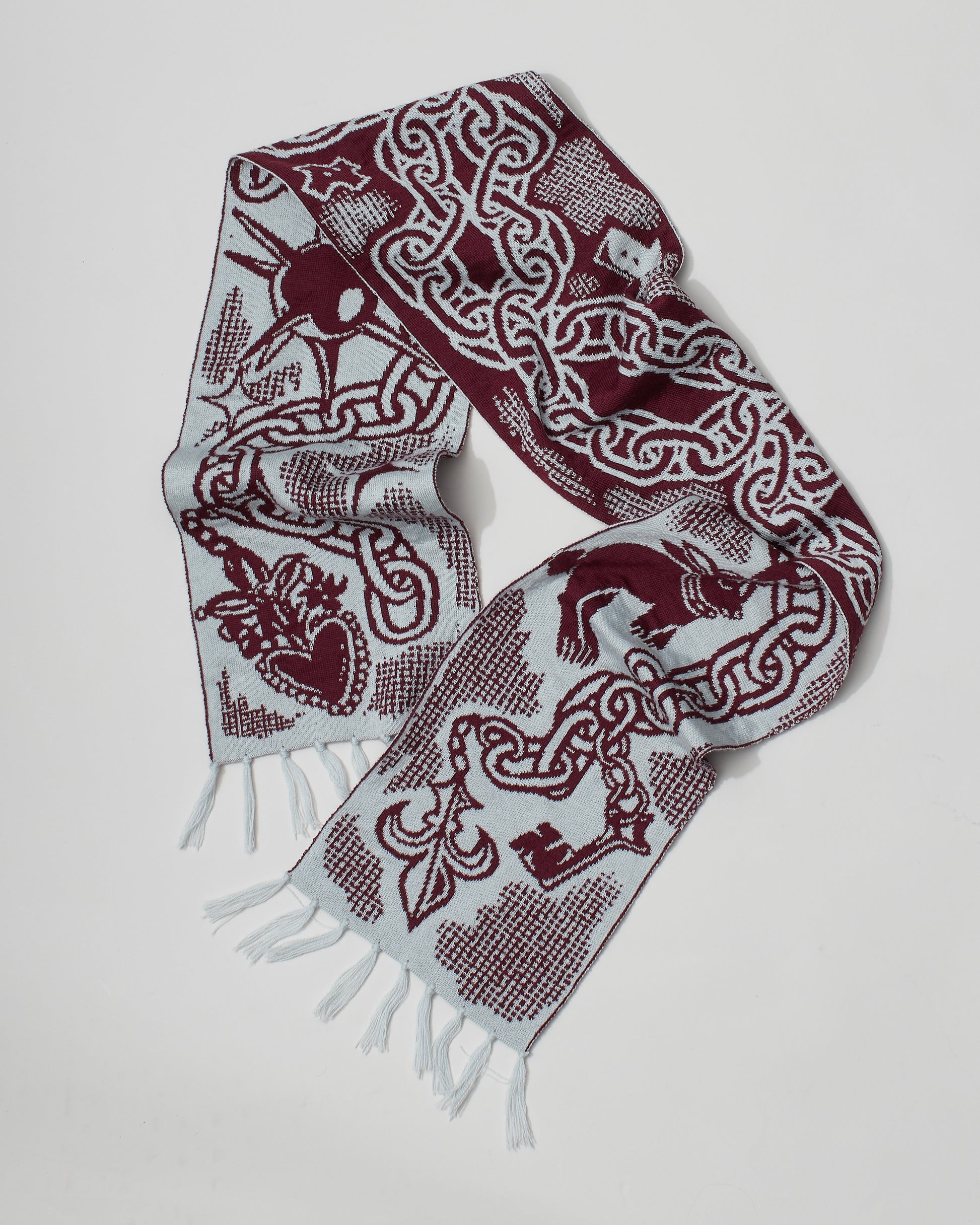 Medieval Trinket Scarf - Ice Blue and Burgundy